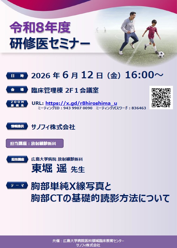 *本セミナーは、広島大学病院卒後臨床研修プログラム修了要件に該当します。